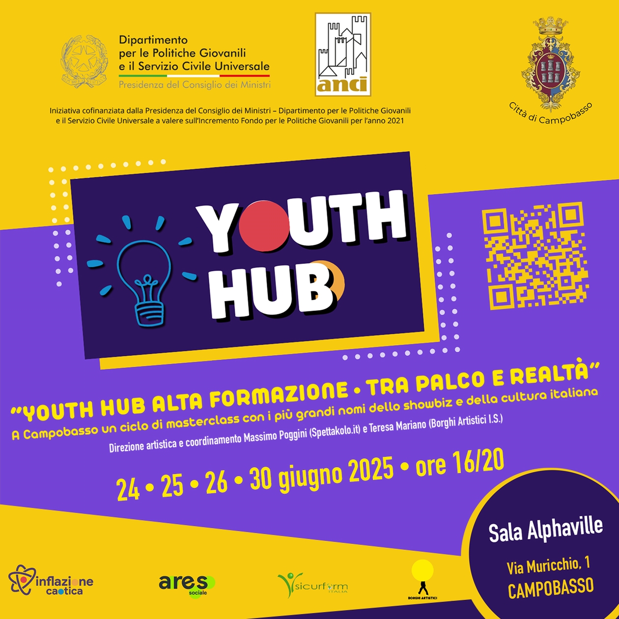Siamo partner del progetto YOUTH HUB - Avviso Pubblico Comune di Campobasso - NEET "connettiamo i giovani al futuro" - Iniziativa co-finanziata dalla Presidenza del Consiglio dei Ministri, Dipartimento per le Politiche Giovanili e del Servizio Civile Universale, a valere sul Fondo per le Politiche Giovanili anno 2021.